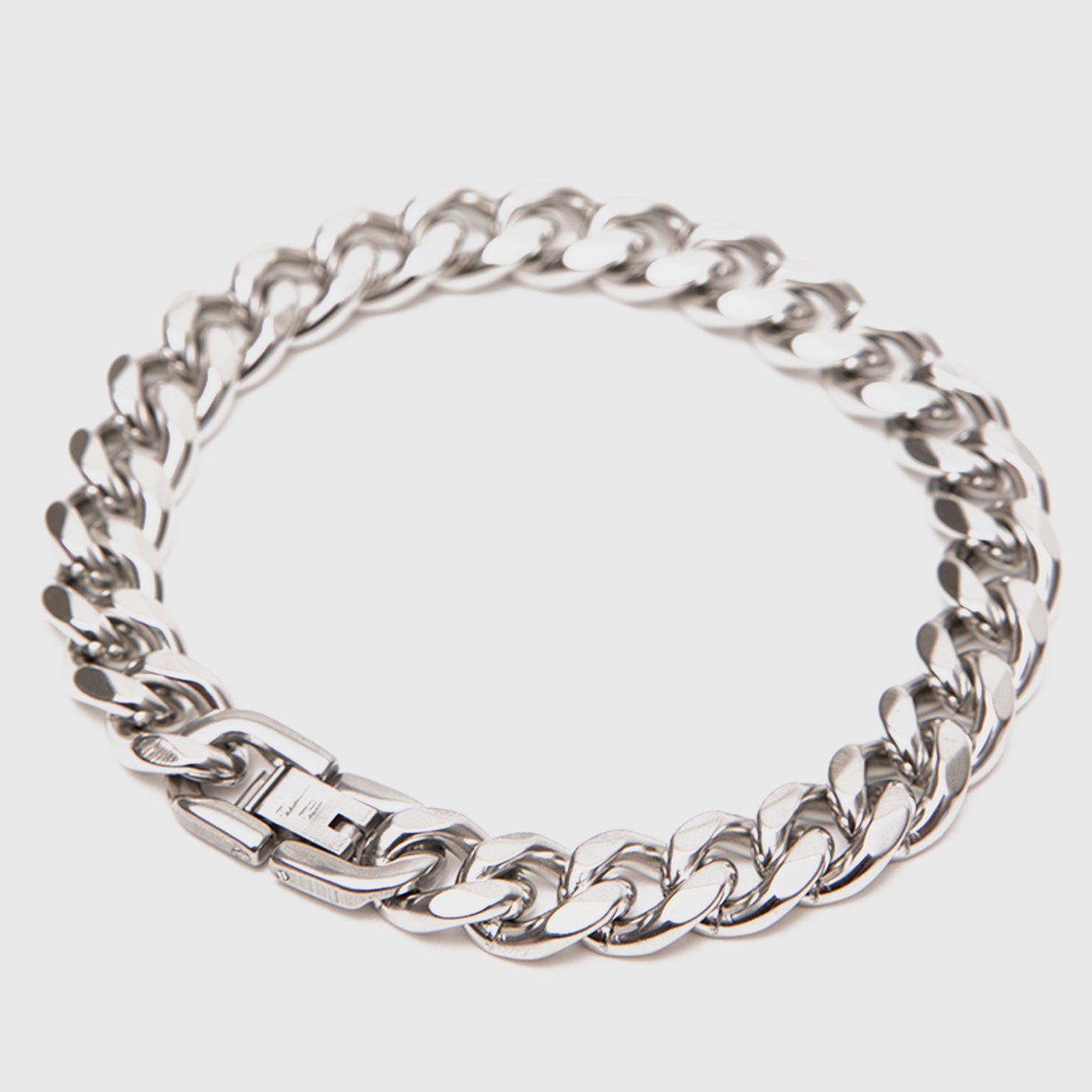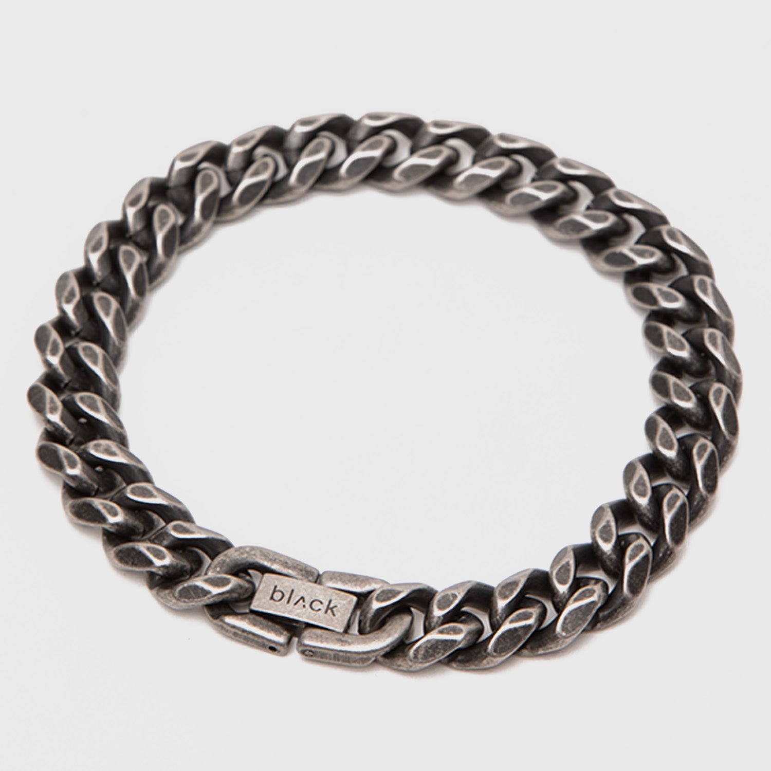 Acero negro y plateado con diseño robusto y contemporáneo, perfecta para destacar tu estilo sin perder versatilidad.